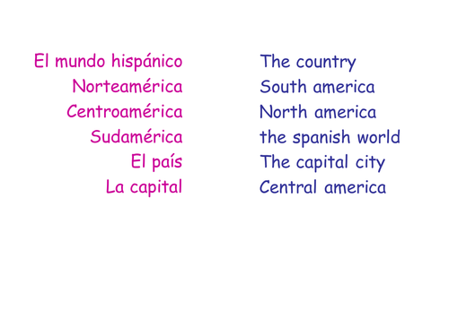 This study set will include all of the spanish speaking countries capitals and their continents. Spanish language has second most speaking population after english.spanish speaking countries contains mainly in american continent and african continent especially south america. That's just false even if you count second language portuguese would be ahead since there is notable migration from spanish south america to brazil plus portuguese is taught in many south american countries.