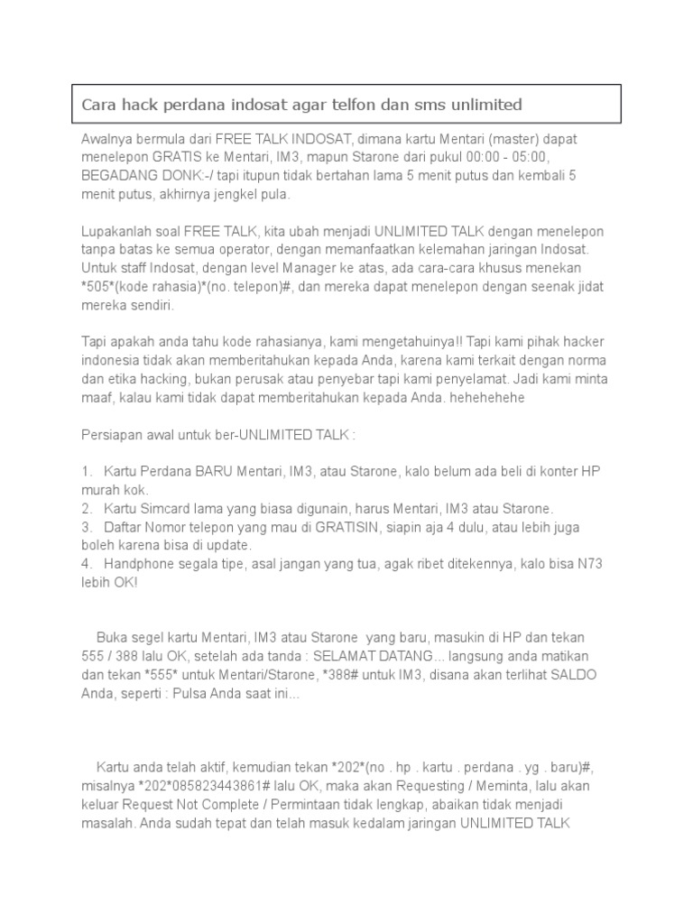 Kalau tidak full, coba cari posisi terbaik agar. Jika akses paketnya lemot indosat unlimited gunakan fub indosat jumbo unlimited. Tapi kami pihak hacker indonesia tidak akan memberitahukan kepada anda, karena kami terkait dengan norma dan etika hacking, bukan perusak atau anda sudah tepat dan telah masuk kedalam jaringan unlimited talk. Sayangnya, tidak sedikit pengguna indosat yang mengeluhkan kalau koneksi internetnya lambat atau lemot.